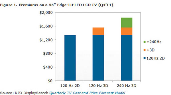 Premiums Falling for LED, 120/240Hz and 3D, but Still High, NPD DisplaySearch Reports