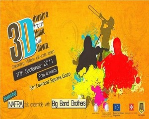 On Saturday 10 September the folk ensemble Nafra and the Big Band Brothers will join forces for the main act of the 3D event in Gozo. Maltese traditional instruments will collide with big band swing for an innovative display of folk roots fusion.