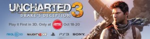 On October 18, 19, 20, take part in a one-of-a-kind entertainment experience from PlayStation. UNCHARTED 3: Drake's Deception: PLAY IT FIRST IN 3D is happening exclusively at select AMC Theatres. This is your chance to play one of the most highly-anticipated video game releases of the year on the big screen and in 3D before it releases. These unique events include: