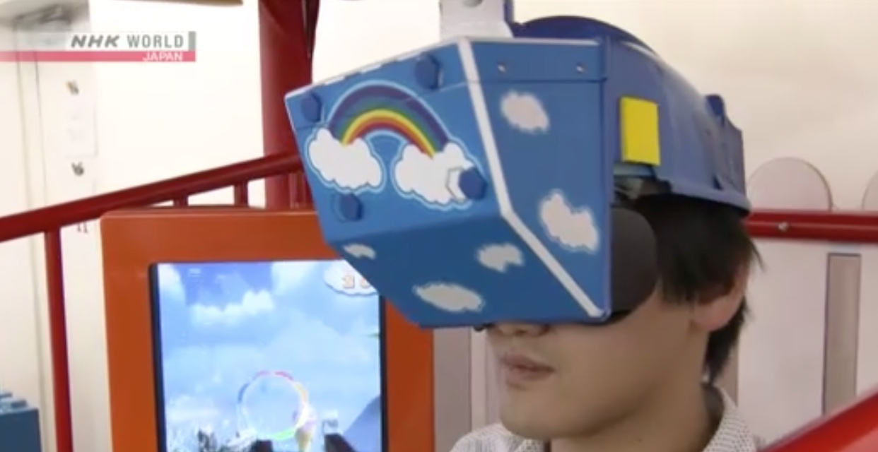 However, game company Gree has developed a helmet-type virtual reality terminal, which it says reduces eye strain.