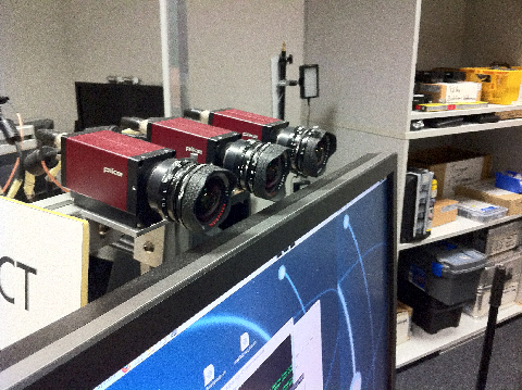 ... Called the Virtual Eye Contact Engine, the software module analyses the scene in real-time 3D from three cameras mounted around the display. It computes the depth structure information of the person’s head which is used to generate a 3D model. The 3D model is then used to compute the view of the virtual camera for both parties and the rendered output appears to show each person looking directly at each other. ...