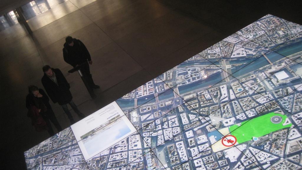 Google is taking over Paris one project at a time. Today, the web giant helped launch anew interactive exhibit at the Pavillon de l’Arsenal called Paris, le métropole et ses projets (Paris, a metropolis in the making). The highlight is a first-ever digital mosaic composed of 48 LED screens that feature 2D and 3D views of Paris through HD Google Earth images.