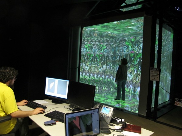 ...There are fewer than 10 CAVES© in the country that allow for a fully immersive 3D virtual environment. CAVES© are typically used to prototype new devices, in this case, an unprecedented collaboration made possible by researcher Patricia Brennan and her Living Environments Laboratory who opened Madison’s CAVE© up to an experimental art project....