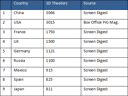 According to a Sept. 20 report from IHS Screen Digest, there are now more than 30,000 3D-enabled theaters in the world and new installations are reported across all regions.