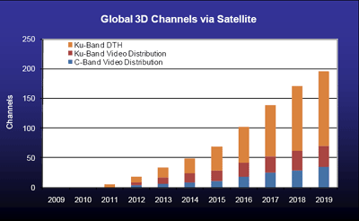 Best guess estimate from the researchers call for around 200 full-time 3D channels to be carried globally within the next 10 years, with most of that coming from the DTH segment. By 2019, NSR sees nearly 200 3D channels offered globally via satellite.