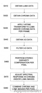 The application refers to Apple's approach as a "paradigm shift from the known software-based approaches." It notes that current software must "guess" at how to perform stereo disparity compensation for 3D images.